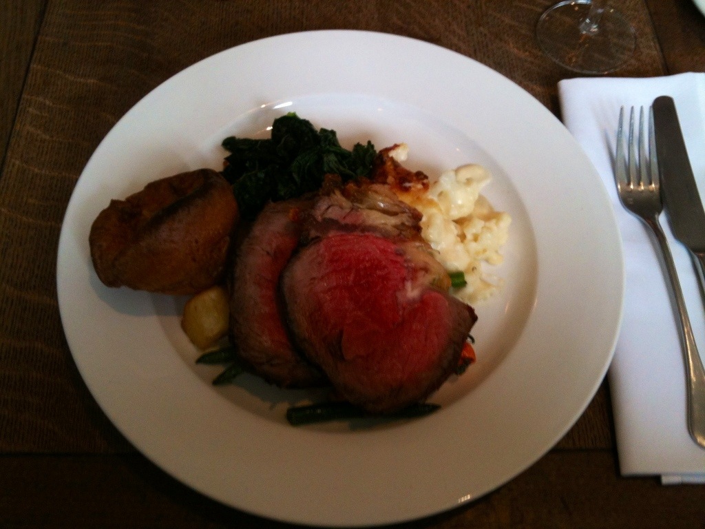 Any drinks menu that features the wonderful chaps at Sipsmith that many times gets my vote and we weren’t disappointed. Top cocktails. The menu has a great selection of ‘traditional’ pub food but it didn’t take me long to go for the beef. A short wait later and it appeared, a delicious pile of British goodness.