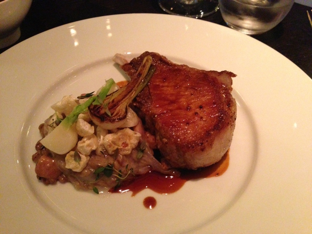 I don’t normally order pork in restaurants – it’s easy to screw up and can be terribly bland. This has got to be the best pork i’ve ever eaten – cooked sous vide and just medium it was moist, rich and thoroughly piggy. It came with a delicious savoury glaze, a ham hock and sauce Robert. It’s sprinkled with some crispy lardo (a terribly trendy ingredient) but it did bring some lovely texture
