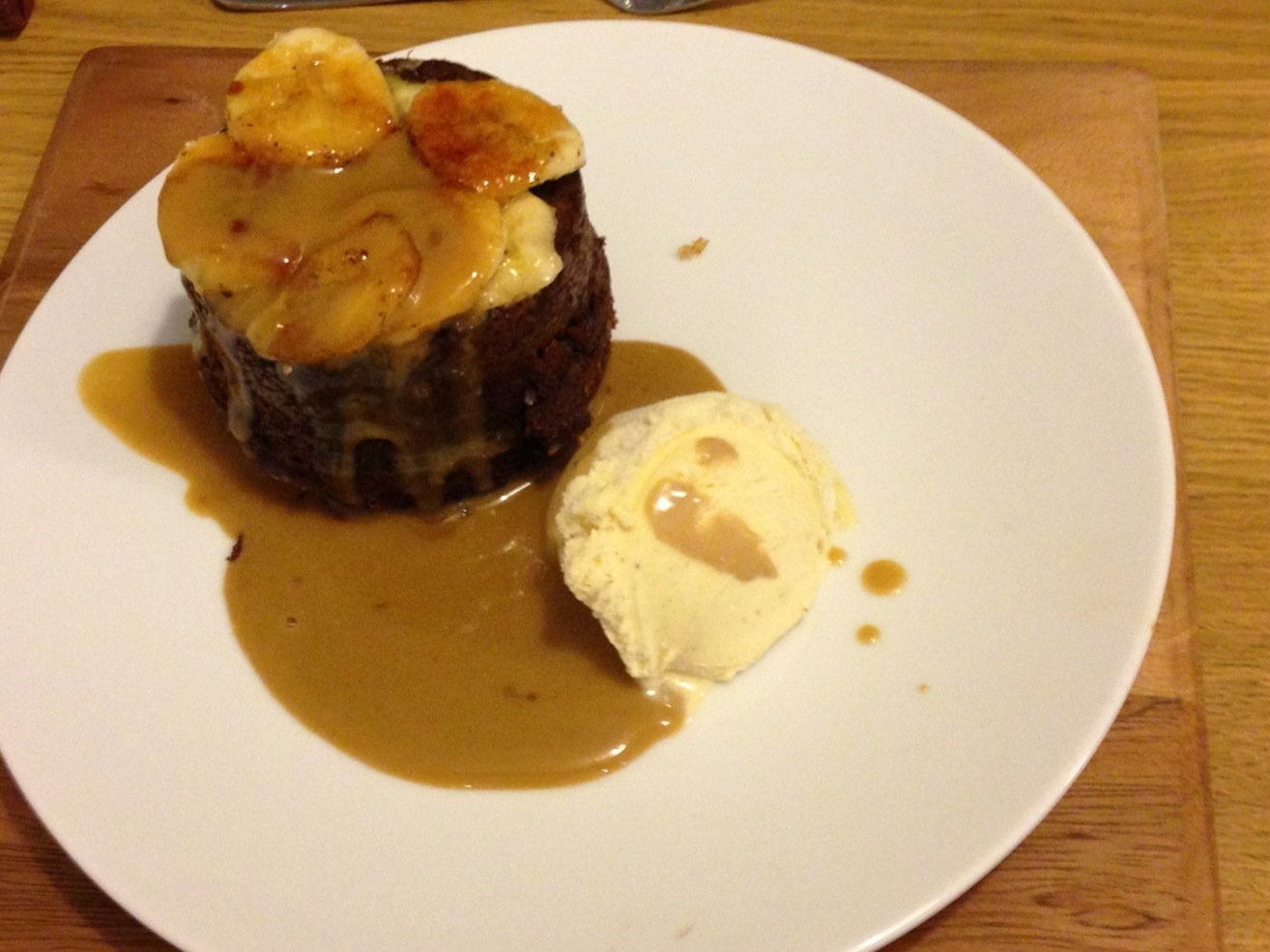 This is the perfect dinner party dessert – I mixed up the cake and had it ready to bake in the moulds – then it’s just a case of popping them in the oven and sorting the bananas. Using the melted sugar to glue the slices together is really cunning. The end result is fab – light, gooey cake with a delicate rum hit and tonnes of toffee and date. The perfect pud for a rainy day.