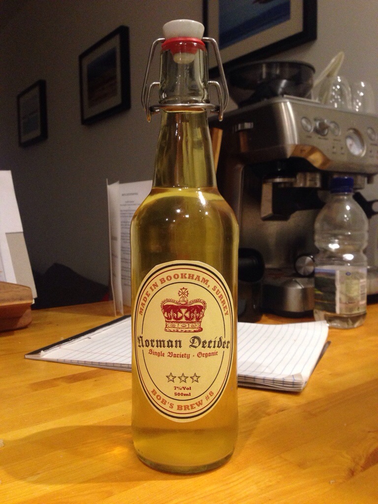 So after all that – what does it actually taste like? Funnily enough, a lot like Cider. This year’s batch is gorgeously clear, with a delicate golden colour. It’s still got quite a yeasty smell, but that will ease with time. There’s only a gentle sparkle (last years was a little too bubbly) and you get a wonderful medium-dry apple flavour. Because it’s a single variety there’s far less going on, it’s a very clean drinking cider.